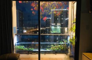 Biến ban công thành vườn thu nhỏ với hồ cá, cây xanh