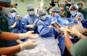 14h7 phút, hai bé song sinh dính liền đã được tách rời thành công và chuyển sang giai đoạn chỉnh, tạo hình...