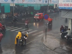 Nhiều người trú mưa, chỉ một thấy người phụ nữ tàn tật đẩy xe...